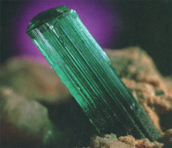 Öâåò: ðîçîâûé, êðàñíûé, îðàíæåâî-êîðè÷íåâûé, æåëòûé, êîðè÷íåâûé, çåëåíûé, ñèíèé, êðàñíî-ôèîëåòîâûé, áåñöâåòíûé, ÷åðíûé; ïîëèõðîìíûé. ×åðòà: áåëàÿ. Òâåðäîñòü: 7—7,5. Ïëîòíîñòü: 3,02—3,26. Ñïàéíîñòü: îòñóòñòâóåò. Èçëîì: íåðîâíûé, ìåëêîðàêîâèñòûé; õðóïîê. Ñèíãîíèÿ: òðèãîíàëüíàÿ. Êðèñòàëëû: îáû÷íî äëèííîïðèçìàòè÷åñêèå, â ïîïåðå÷íîì ñå÷åíèè — ñôåðè÷åñêèé òðåóãîëüíèê; íåðåäêè êîìáèíàöèè íåñêîëüêèõ ïðèçì; ïàðàëëåëüíî ãëàâíîé îñè — îò÷åòëèâàÿ ïðîäîëüíàÿ øòðèõîâêà. Õèìè÷åñêàÿ ôîðìóëà: (Na, Li, Ñà) (Fe2+, Mg, Mn, Al)3•Al6 (OH, F)4 [BO3]3 [Si6O18], ñëîæíûé áîðîñèëèêàò ïåðåìåííîãî ñîñòàâà. Ñòåïåíü ïðîçðà÷íîñòè: ïðîçðà÷åí äî íåïðîçðà÷íîãî. Ñâåòîïðåëîìëåíèå: 1,616—1,652. Äâóïðåëîìëåíèå: îò -0,014 äî -0,044. Äèñïåðñèÿ: 0,017. Ïëåîõðîèçì: îáû÷íî ñèëüíûé èëè îò÷åòëèâûé; ó êðàñíîãî — òåìíî-êðàñíûé, æåëòûé, ñâåòëî-æåëòûé; ó êîðè÷íåâîãî — îò òåìíî-áóðîãî äî áóðîãî; ó çåëåíîãî — îò òåìíî- äî ñâåòëî-çåëåíîãî; ó ñèíåãî — îò òåìíî-ñèíåãî äî ãîëóáîãî. Ëèíèè ñïåêòðà ïîãëîùåíèÿ: ó êðàñíîãî — 555, 537, 525, 461, 456, 451, 428; ó çåëåíîãî — 497, 461, 415. Ëþìèíåñöåíöèÿ: îáû÷íî ñëàáàÿ, ó áåñöâåòíîãî — çåëåíîâàòî-ãîëóáàÿ; ó êðàñíîãî — ðîçîâàòî-ôèîëåòîâàÿ; ó ðîçîâîãî, êîðè÷íåâîãî, çåëåíîãî, ñèíåãî — îòñóòñòâóåò. Íè îäèí äðàãîöåííûé êàìåíü íå îòëè÷àåòñÿ òàêèì ðàçíîîáðàçèåì öâåòîâ, êàê òóðìàëèí. È õîòÿ â Ñðåäèçåìíîìîðüå îí áûë èçâåñòåí ñ àíòè÷íûõ âðåìåí, â Åâðîïó òóðìàëèí çàâåçëè ñ Öåéëîíà ãîëëàíäöû â 1703 ã. Îíè íàçûâàëè åãî ñèíãàëåçñêèì ñëîâîì «òóðìàëè». Ïî îêðàñêå ðàçëè÷àþò ñëåäóþùèå ðàçíîâèäíîñòè òóðìàëèíà. Ðóáåëëèò — ñ ëàòèíñêîãî ïåðåâîäèòñÿ êàê êðàñíîâàòûé. Öâåò êàìíÿ îò ðîçîâîãî äî êðàñíîãî. Íàèáîëåå öåíèòñÿ ðóáèíîâî-êðàñíàÿ ðàçíîñòü. ![]() Äðàâèò — íàçâàíèå ïðîèñõîäèò îò ìåñòîðîæäåíèÿ Äðàâå â Êàðèíòèè (Àâñòðèÿ). Öâåò êàìíÿ îò æåëòîâàòî-êîðè÷íåâîãî äî òåìíî-êîðè÷íåâîãî. ![]() Âåðäåëèò — â ïåðåâîäå ñ èòàëüÿíñêîãî «çåëåíûé êàìåíü». Êàìåíü ðàçëè÷íûõ îòòåíêîâ çåëåíîãî öâåòà. Íàèáîëåå öåíèòñÿ èçóìðóäíî-çåëåíàÿ ðàçíîâèäíîñòü. Ýòî ñàìûé ðàñïðîñòðàíåííûé èç áëàãîðîäíûõ òóðìàëèíîâ. ![]() Èíäèãîëèò íàçâàíèå ñâîå ïîëó÷èë ïî öâåòó. Êàìåíü ðàçëè÷íûõ îòòåíêîâ ñèíåãî. ![]() Ñèáèðèò íàçâàíèå ñâîå ïîëó÷èë îò ìåñòà íàõîäêè — Ñèáèðè, õîòÿ, òî÷íåå, íàéäåí áûë íà Óðàëå. Êàìåíü ãóñòî-ìàëèíîâîãî, ëèëîâàòî-êðàñíîãî, êðàñíî-ôèîëåòîâîãî öâåòà (èíîãäà óïîòðåáëÿåòñÿ êàê ñèíîíèì ðóáåëëèòà). ![]() Àõðîèò â ïåðåâîäå ñ ãðå÷åñêîãî çíà÷èò «áåç öâåòà», ðåäêàÿ áåñöâåòíàÿ èëè ïî÷òè áåñöâåòíàÿ ðàçíîâèäíîñòü òóðìàëèíà. ![]() Øåðë — ñòàðîå ãîðíÿöêîå íàçâàíèå êàìíÿ. Ýòî ÷åðíàÿ, âåñüìà ðàñïðîñòðàíåííàÿ ðàçíîâèäíîñòü òóðìàëèíà.  þâåëèðíûõ öåëÿõ èñïîëüçóåòñÿ ðåäêî, ãëàâíûì îáðàçîì â òðàóðíûõ óêðàøåíèÿõ. ![]() Íàðÿäó ñ îäíîòîííûìè íåðåäêî âñòðå÷àþòñÿ ïîëèõðîìíûå òóðìàëèíû.  îäíîì êðèñòàëëå òàêîãî òóðìàëèíà ìîæíî ðàçëè÷èòü ó÷àñòêè ðàçíîãî öâåòà èëè îòòåíêà. Ñðåäè êîëëåêöèîíåðîâ ñâåòëîîêðàøåííûå êðèñòàëëû òóðìàëèíà ñ ÷åðíîé ãîëîâêîé íàçûâàþòñÿ «ãîëîâîé ìàâðà», à ñ êðàñíîé — «ãîëîâîé òóðêà». ×àñòî ðàñïðåäåëåíèå îêðàñêè çîíàëüíîå.  Áðàçèëèè, íàïðèìåð, âñòðå÷àþòñÿ òóðìàëèíû ñ êðàñíîé ñåðäöåâèíîé, îêàéìëåííîé ñíà÷àëà ñâåòëî-, à çàòåì òåìíî-çåëåíîé è çåëåíîé çîíàìè. Ó þæíîàôðèêàíñêèõ òóðìàëèíîâ çåëåíîå ÿäðî îêðóæåíî êðàñíîé âíåøíåé çîíîé. Òóðìàëèíû ñ êðàñíûì ÿäðîì è çåëåíîé «êîðêîé» êîëëåêöèîíåðû íàçûâàþò «àðáóçíûìè». Òóðìàëèíîâûé «êîøà÷èé ãëàç» áûâàåò ðàçíîãî öâåòà, íî ëèøü ó çåëåíûõ è ðîçîâûõ ðàçíîâèäíîñòåé ïîëîñî÷êà ñâåòà îò÷åòëèâî ðàçëè÷èìà. Åå ïîÿâëåíèå îá